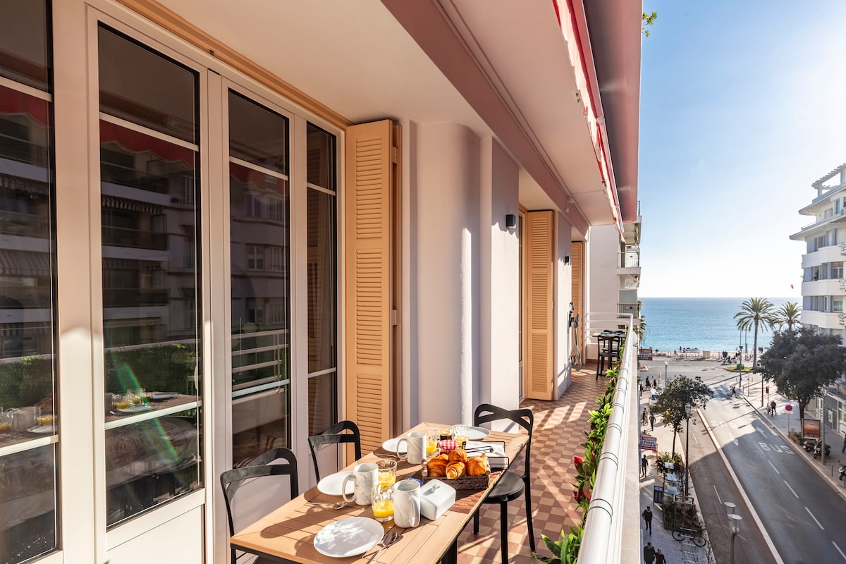 Newly refurbished studio apartment in a historic and traditional Nice building built in 1834 where the famous French artist Henri Matisse lived and painted several masterpieces such as The Bay of Nice in 1918. Fantastic panoramic sea view from the balcony. Beau Rivage beach and lounge on your doorstep. Just a few minutes walk to the city heart, the old town (great at day and night), many restaurants and shopping areas. Cozy and luminous as the apartment is facing South. 32 m2 room (344ft2)