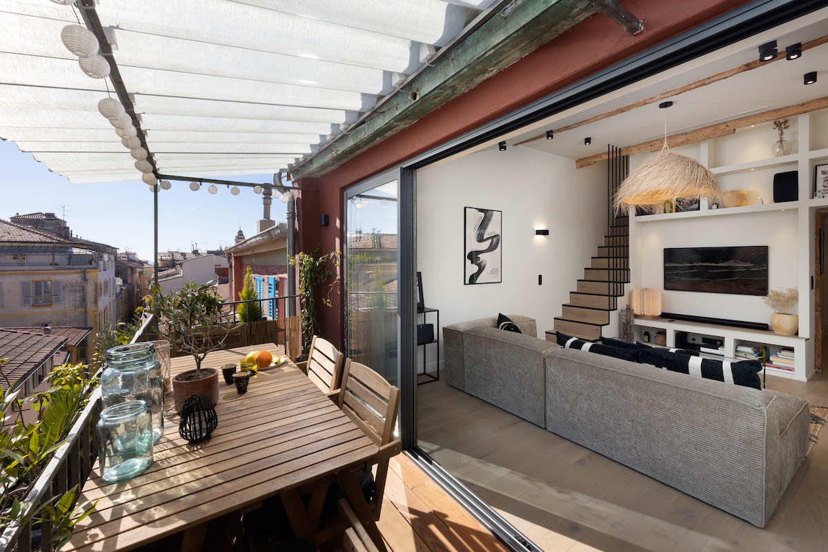 Very bright and cozy loft nested on last (6th US) floor with a lift in an historic building (with a lift) just a stone-throw from the Old Harbor. The unit is oriented East and offers unobstructed views on the Old Harbor, Cap de Nice and the sea that you can enjoy from the patio, the sofa, the dining table or even your bed. The location can't be better - beaches, La Promenade, Old Town and all amenities are just 5 min walk. The unit is accessible from the airport with Tram Line 2.