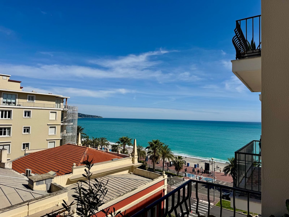 You will stay in my fabulous apartment, on the Promenade des Anglais, facing the large blue, bright and completely renovated with taste in a beautiful building in Nice. The master suite, equipped with a queen size bed and its bathroom has a splendid sea view. The second bedroom equipped with a double bed faces the back, a bathroom completes it. Linens and towels will be provided. For more information please read the detailed description below.