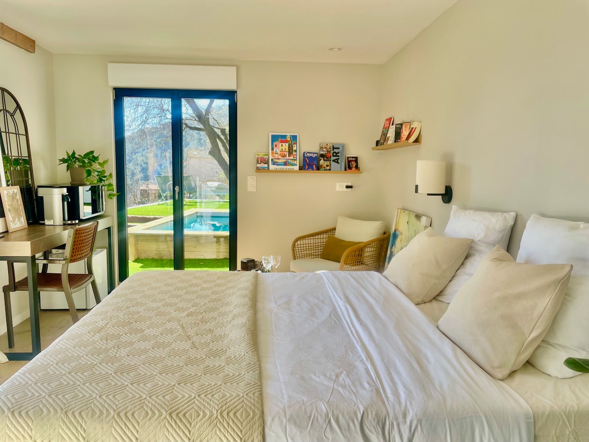 Profitez de ce deux pièces, comprenant une salle de bain avec douche ainsi qu'une cuisine, une terrasse extérieure privative. Situé à 30 minutes de la mer. Idéal pour les randonneurs, cyclistes, il conviendra également aux amateurs de parapentes et de canyoning. Logement indépendant attenant à notre villa, il recevra confortablement un couple, éventuellement accompagné d'un enfant de plus de 6 ans. Possible accès à un lave linge sur demande. Il est climatisé.