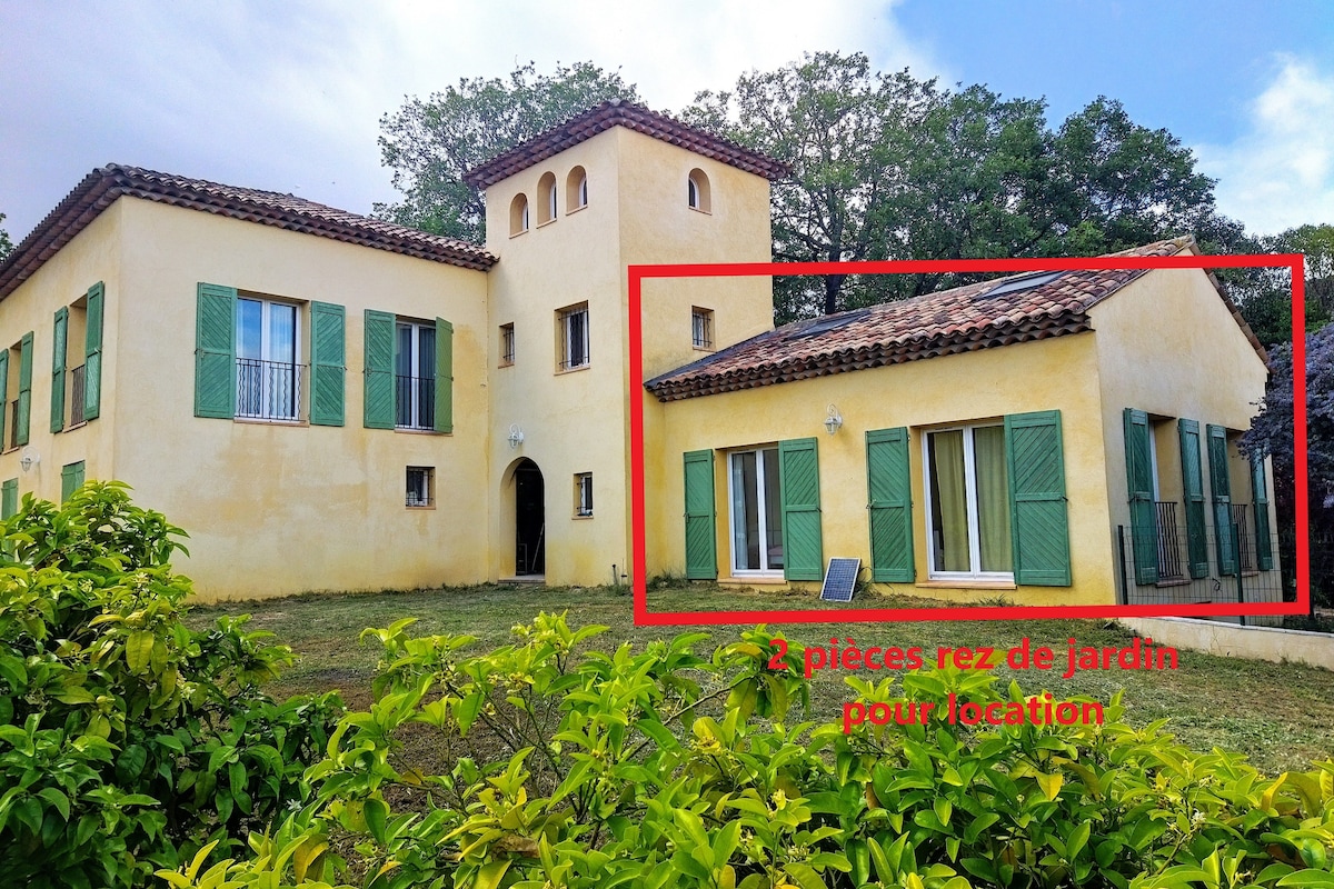 Grand appartement 80 m2 avec une chambre dans une aile indépendante de notre villla. grand jardin feerique . Aucun vis à vis. 2 piscines dont un jacuzzi , bain suedois chauffé sur reservation 60 euros. Cadre magique. vue mer/ montagne Table extérieure terrasse couverte Terrasse piscine . Acces barbecue . cuisine : four, plaque induction lave vaisselle frigidaire Smeg. Sddouche avec toilette et seche serviette confort. poêle à bois jotul. Rideaux black out . grand ecran TV DVD . parking