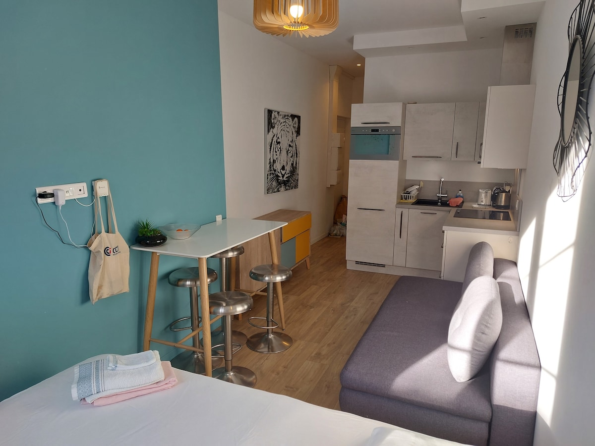 Wake up in this bright and cozy apartment located right in the most trendy and vibrant neighborhood in Nice. It’s a small renovated and well-equipped flat very close to the Port, Place du Pin and the Old Nice. After a long day in the city, you can either enjoy a drink on your private terrace or simply relax watching an episode of your favorite Netflix show on the comfortable sofa after exploring local culture, or experiencing the Riviera sunbath !