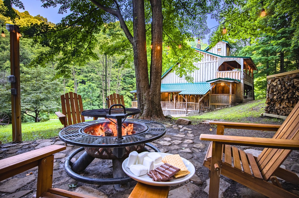 Less than a mile from the New River Gorge Bridge, National Park Canyon Rim Visitors Center, and Adventures on the Gorge. Borders the NRG National Park. Immediate access to a main road. Only a few minutes drive to Fayetteville and Oak Hill. Accessibility features, game room, Roku TV, Wi-Fi, outdoor hot tub, patio, balcony, spacious yard, campfire ring and grill. Bring yard games and camp chairs. Charcoal and firewood are available nearby. Maximum 8 people; 2 dogs.