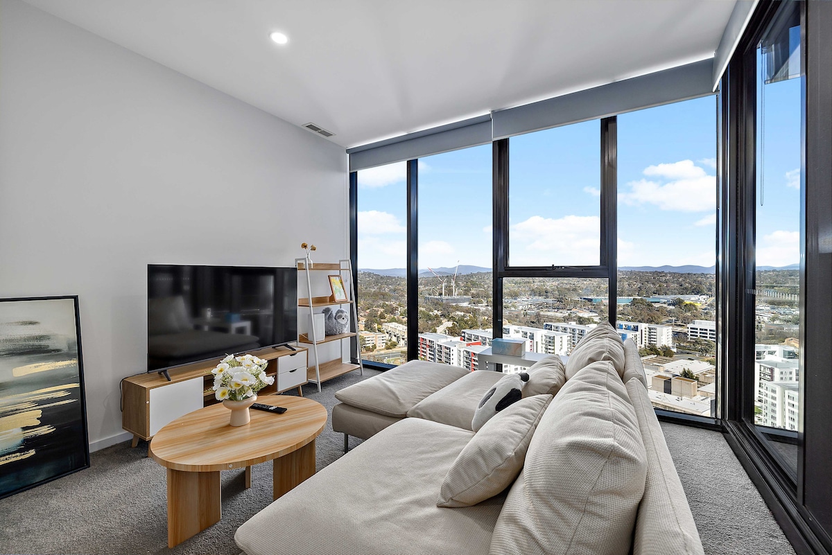 Enjoy a stylish experience at this centrally located place on 22th level: - Gym, sauna, pool in the building on level 5 - Woolies metro, BWS, kebab, and restaurants just downstairs - 5 minutes walk to McD & KFC - 5 minutes drive to Westfield & UC - 12 minutes drive to City Top amenities: - 4k Smart TV - Nespresso with free pods - Kettle & toaster - Queen size bed - Washing machin + Dryer - Free parking Professional Host: - Live in Canberra - 24/7 via call - Responsive