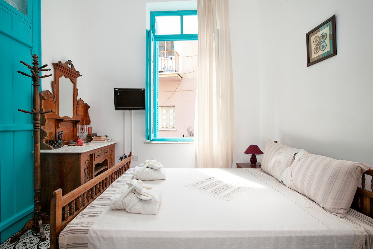 3rd floor hosts 1 couple and 2 children in 2 separate rooms or a group of 4 persons. Veranda, view village/ mountains. Four single beds, flat TV with 38 channels including English, Russian, Arabic etc. . Outdoor furniture is available. Climb several stairs. Breakfast at request for €10pp is an additional cost, is not included in the payment. BED & BREAKFAST is Property Type/Category and does not confirm by itself breakfast payment. Heating or individual heaters are provided.