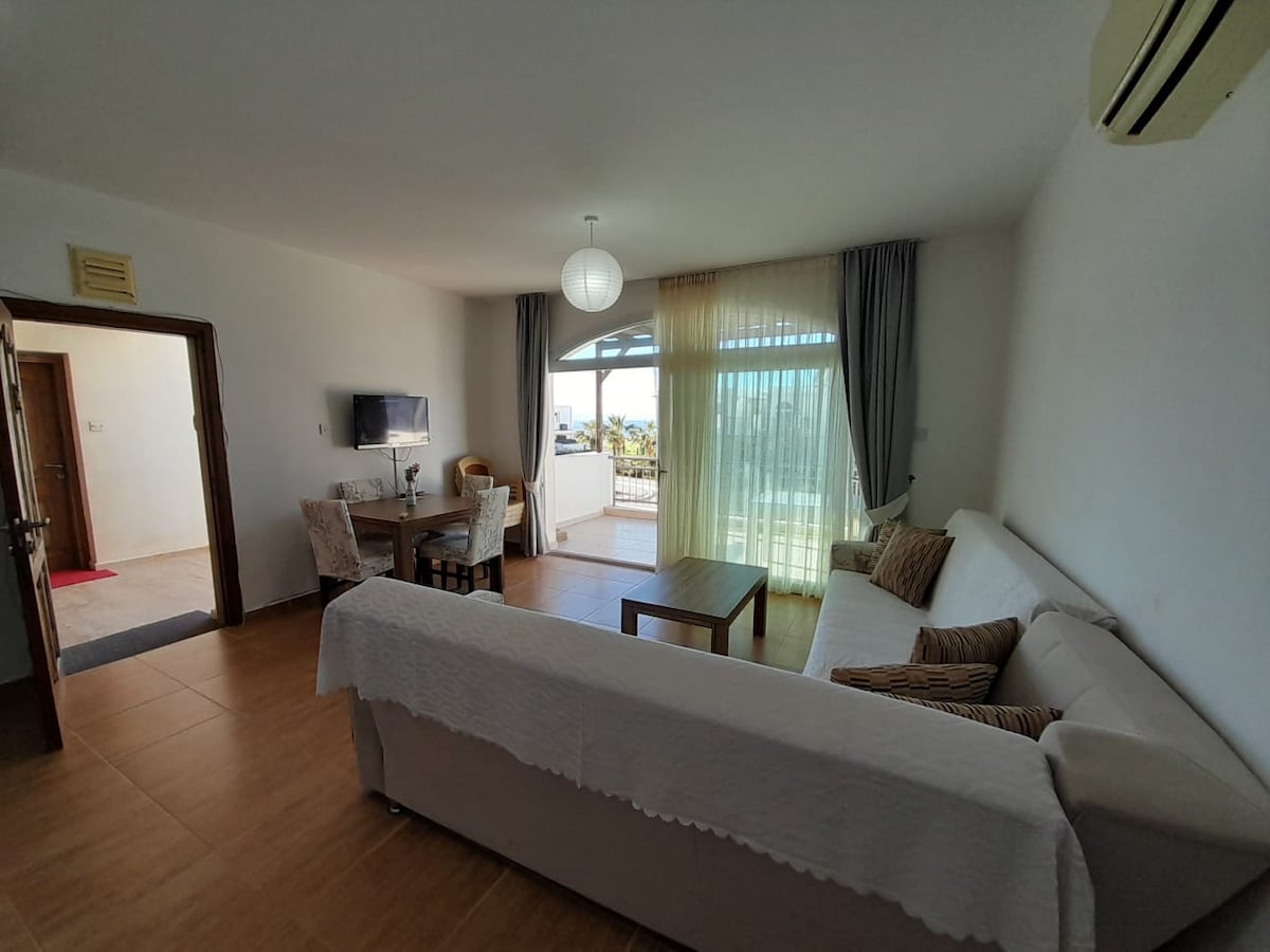 Sea view new apartment in Aphrodite beachfront resort in N.Cyprus (30mins from Nicosia) with open access to minigolf, 2 gyms, 9 pools (rooftop, near the sea and heated in the building),3 restaurants in the resort.Food delivery.Free parking.2mins walk to the sea. Free 1way airport transfer for booking over 60 days.New furniture.Strong WiFi.Smart TV. Private kitchen, bathroom & entrance.Self check in anytime by code.Table inside and on the balcony.Swing chair for2.Washing machine.Non smoking.