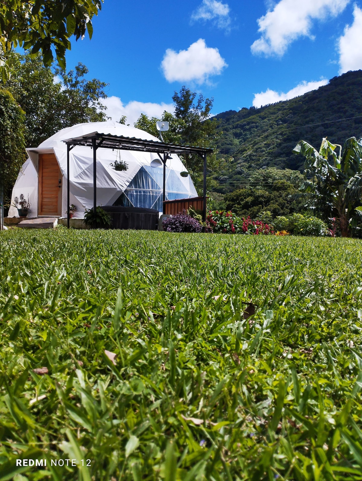Glamping Dome surrounded by nature & wildlife with panoramic mountain & ocean views. ● The areas: ☆ Parking ☆ Hammocks area ☆ Tiny pool under the trees. ☆ 1st floor terrace with kitchen, bathroom & dome ☆ 2nd floor terrace with panoramic views ● Descripción: A fully equipped kitchen with an outdoor barbecue, bathroom with rain shower & hot water, air-conditioned room, tiny pool under the trees, area with hammocks to relax, terrace with panoramic view, WIFI, private parking & security cameras.