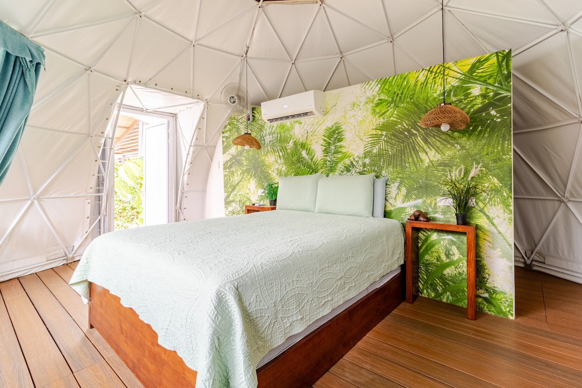 Perfect for those seeking to escape the beaten path and enjoy a once-in-a-lifetime experience, come stay in this magical dome. Nestled in the jungle, you'll find a tranquil peace that can't be found anywhere else. ✔ 1 bed (sleeps 2) ✔ Jacuzzi ✔ Air Conditioning ✔ 1 bathroom with hot water shower ✔ Fully equipped kitchen: coffee maker, fridge, microwave ✔ Stunning panoramic views ✔ Pool and hammock