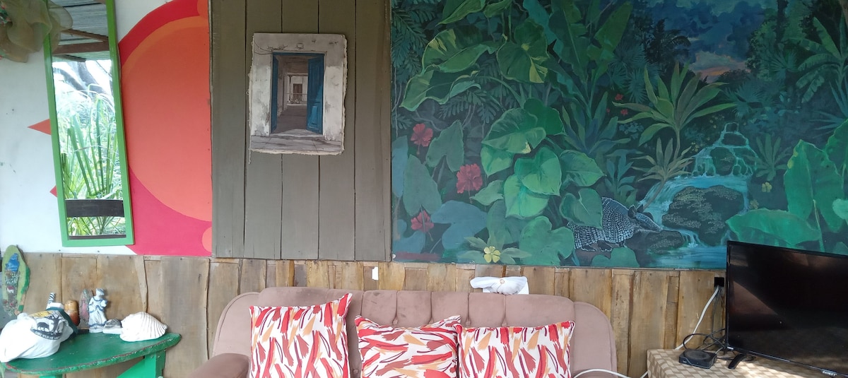 No querrás irte de este lugar tan único y encantador, excelente ubicación frente a la playa y lleno de naturaleza! Habitación en planta alta,cuenta con dos camas, abánico, minibar,Tv con cable,baño y ducha anexo en planta baja totalmente privado.