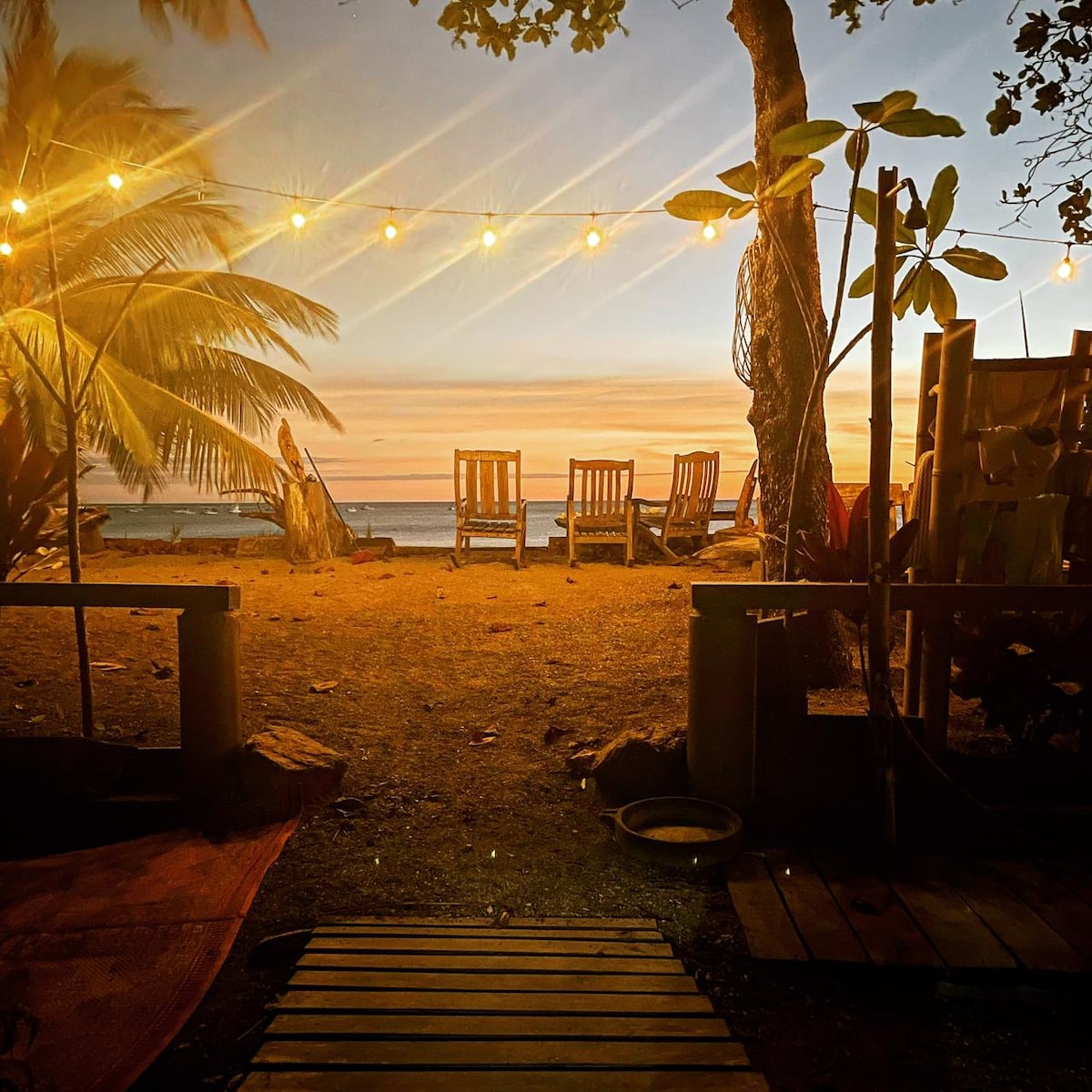 Beautiful 3 bedroom guest house within a gated development of Hacienda Pinilla and located in the exclusive beachfront private community of Avellanas,just steps from Avellanas beach.Quiet,calm and only 15 minutes from Tamarindo beach town. Plumeria Guest house is a two level,three bedroom home with full A/C uniquely designed to feel submerged in nature while being only 60 feet from the beach and close distance to surf breaks, Lola’s and Beachclub