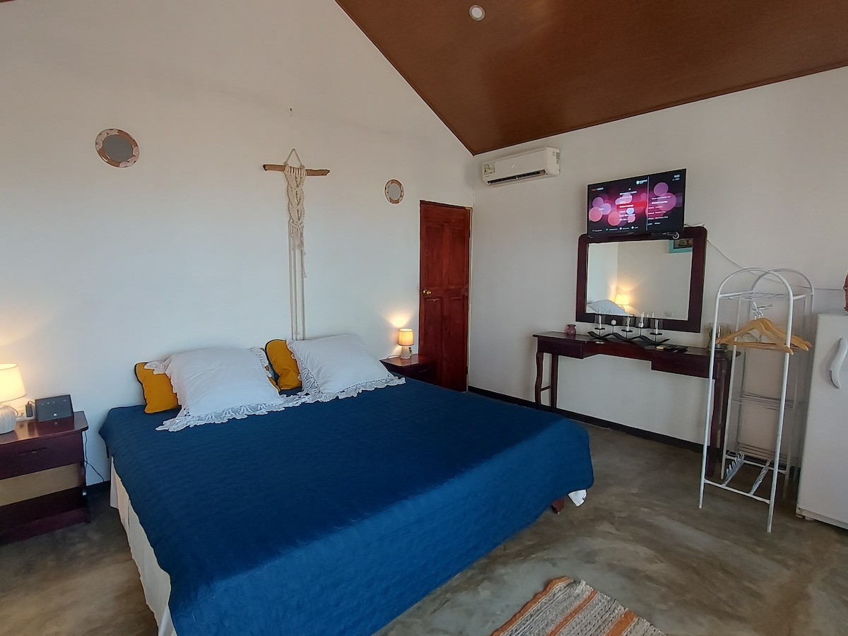 Casita de la Luna and its fraternal twin, Casita del Sol (airbnb.com/h/casacelajes-sol) make up the first floor of a newly-built house on the ocean, at the mouth of Rio Nosara. Peaceful, quiet, a bit away from Guiones and Pelada, but close enough you can walk, drive or grab a tuktuk. Enjoy your own entrance and a beautiful shared beach-front salt-water pool overlooking the wilderness. Swim, explore tide pools, SUP on the river, or surf empty waves just steps away.