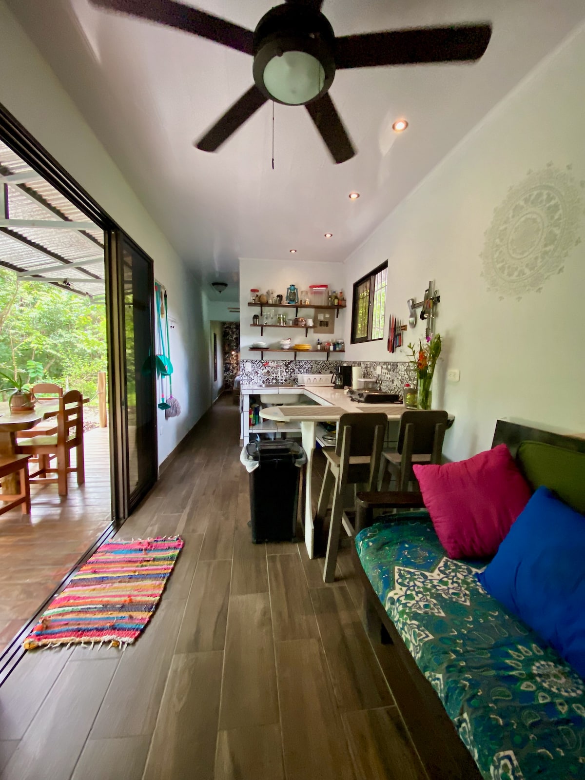 Wake up and step onto the beach! This is a real, Costa Rican experience, including wildlife (which can start very early in the morning:). Enjoy meeting locals, playing in ocean waves, and seeing iguanas and howler monkeys. Villa Margarita is a place unlike any other. The bungalow style apartment sits on the oceanfront of a local Sámaran family’s long-time property. It is one of the few tree-covered areas on Playa Sámara. Glass doors open up to the beach with hammocks and lounge chairs.