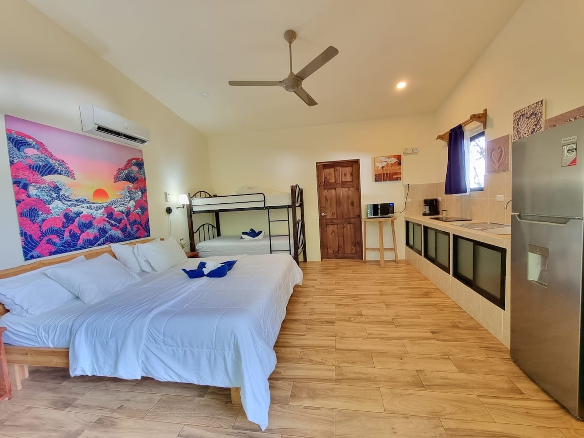One studio of a set of 7. The studio is equipped with all you need to make your stay wonderful. Blue is on the top floor, so you need to climb up a flight of stairs. Steps from the beach, supermarkets, restaurants, but private enough for you to feel at ease. ! Each studio has A/C, hot water, 100 mbps wifi fiber optic, desk, private bathroom, kitchen and balcony! We have a beautiful salt water pool and BBQ area. Check out Magic Place ROSADO, AZUL, MORADO, GRIS, BLANCO, VERDE if we are full!