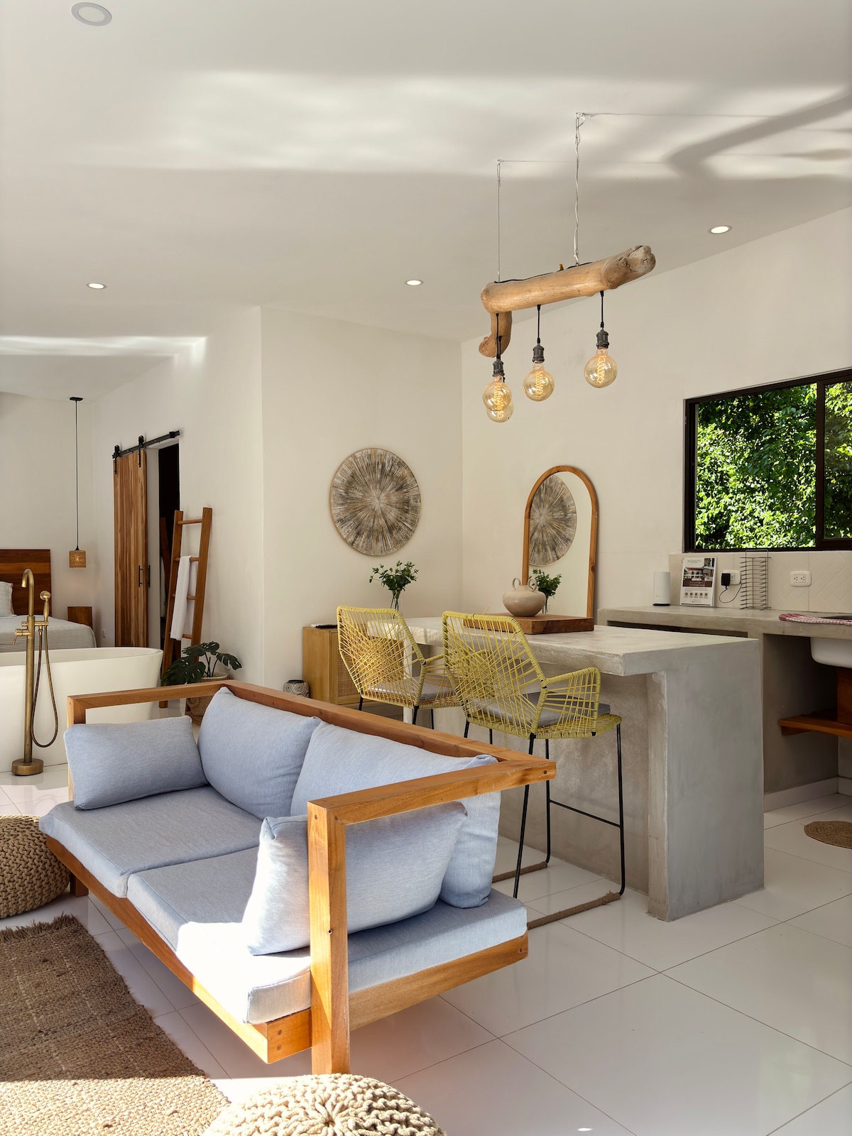 ✨ This uniquely designed studio is 1 of only 7 exclusive apartments in La Fortuna, just 3 blocks from downtown yet tucked away from noisy streets. Perfect for couples or solo travelers, it features a KING bed, A/C, high-speed WiFi, kitchenette, Smart TV and full bathroom. Outside, unwind in your private JACUZZI or savor magical sunsets from the rooftop terrace with breathtaking volcano views 🌋💫.