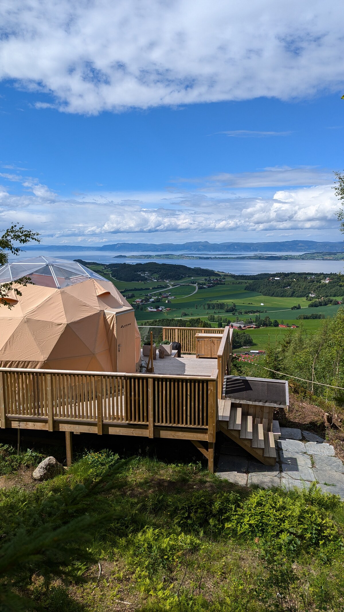 "Forbord Dome" er en eksklusiv glampingopplevelse for to personer i hjertet av naturen. Du kan sove under stjernene, nyte panoramautsikten utover Trondheimsfjorden, få med deg en magisk solnedgang eller se det fantastiske nordlyset hvis du er heldig. Kuppelen er hele 23 kvadratmeter med vindu i taket og i fronten og den er plassert på en terrasse i to nivåer med sittegruppe og fyrfat. Det er mange flotte turmuligheter i omegn, hva med en tur til toppen av "Forbordsfjellet"?