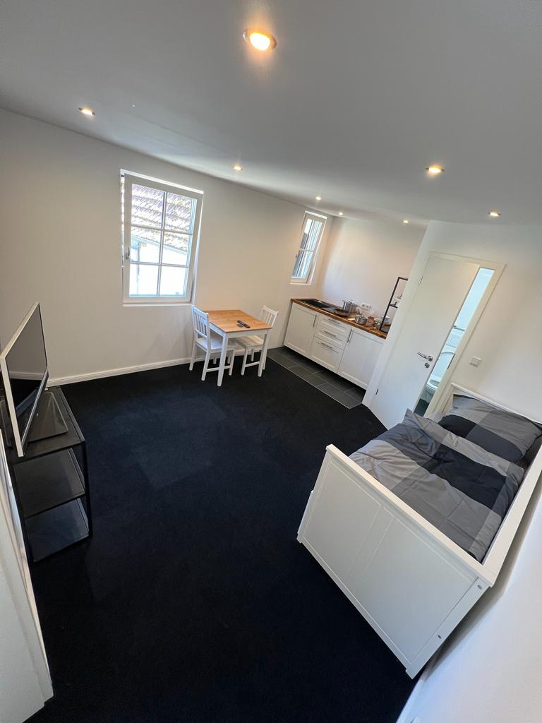 Unser stilvoll gestaltetes Appartement in einem neu sanierten Fachwerkhaus befindet sich in unmittelbarer Nähe des historischen Marktplatzes von Nidderau-Windecken. Die besondere Atmosphäre schwappt schnell auf Besucher über und lädt zum Verweilen ein. Über einen eigenen Eingang gelangen Sie in Ihr Domizil, welches neben dem Eingangsbereich über ein Wohnzimmer, ein Schlafzimmer, ein Bad und eine Küche verfügt. Perfekt geeignet für zwei bis max. drei Personen (mit Zustellbett).