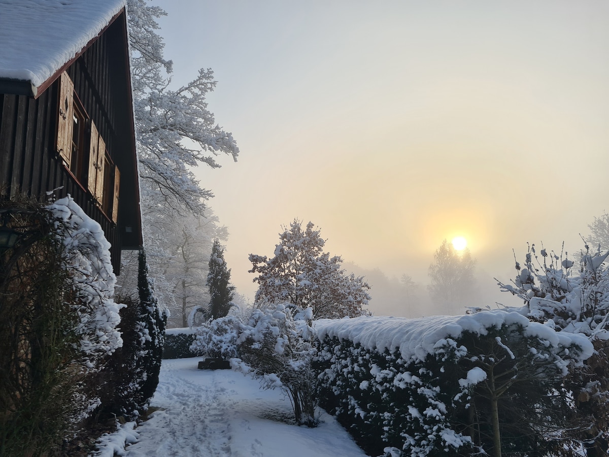 Das über 200 qm große , freistehende Haus liegt etwas zurückgelegen am Ortsausgang des Dorfes Wolfgarten, inmitten des Nationalpark Eifel. Zum Haus gehört ein 4000 qm großer Garten und eine Obstwiese, die direkt an den Wald grenzt.