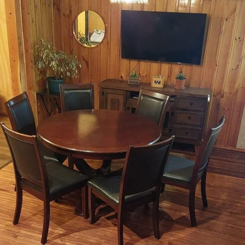 Es muy acogedora, el diseño de la casa es de mi papá con María, a ellos les encanta mezclar piedra laja con madera. Podrán ver que las lámparas están diseñadas con raíces de palos muertos que hemos encontrado en diferentes campos de la región. Nos encanta lo rústico y lo podrán apreciar El lugar es muy tranquilo y amplio, para un grupo grande es ideal, se encuentra a unos minutos de Valdivia, rodeado de naturaleza, agradable para descansar y pasar un buen momento en familia o amigos.Te espero.