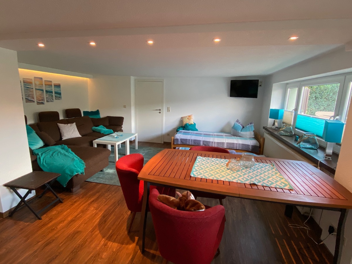 Die 88 m² große FeWo in Schlotzau liegt nur 5 Min. von der Autobahn entfernt. Fulda ist in 10 Min. erreichbar, ebenso kann man von hier aus die Rhön und das hessische Kegelspiel erkunden. Die Wohnung bietet Platz für bis zu 5 Personen, mit offenem Wohn-/Essbereich, großen Fensterfronten und herrlichen Ausblick auf Wald & Pferde. Ein Spielzimmer (UG) für Kinder, ein großer Garten und ein umzäuntes Grundstück stehen exklusiv den Gästen zur Verfügung. Im DG befindet sich eine Sauna zum Entspannen.