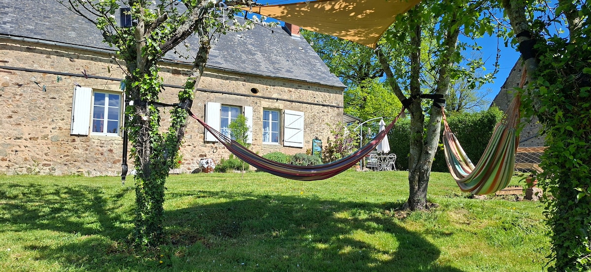 Belle maison rustique, avec terrain d'1ha, un étang (à sec très souvent) de nombreux arbres. 7 chambres, idéale déjà pour petite famille ou un groupe comme plusieurs familles ou alors pour des séminaires bien être (mauvaise connexion wifi et 4G). Nous n’acceptons plus les fêtes et anniversaires entre adultes, cela dérange trop le voisinage. Havre de calme et de nature. Lieux de ressourcement, de création, mais également propice aux échanges. Le respect du calme du hameau est demandé.