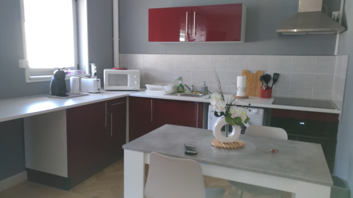 Chers futurs invités(es), Bienvenue dans notre superbe appartement duplex ! Veuillez noter que c'était auparavant notre maison. Moi-même et Simba avons vécu ici heureux pendant un certain temps et tout a été fait sur mesure, selon mes goûts. Niché à 15 minutes à pied du centre-ville et 5 minutes de la gare, cet hébergement vous offrira je l'espère une expérience vraiment remarquable pour ceux qui recherchent confort, style et commodité. Attention à la poutre au niveau de la chambre à 1m70.