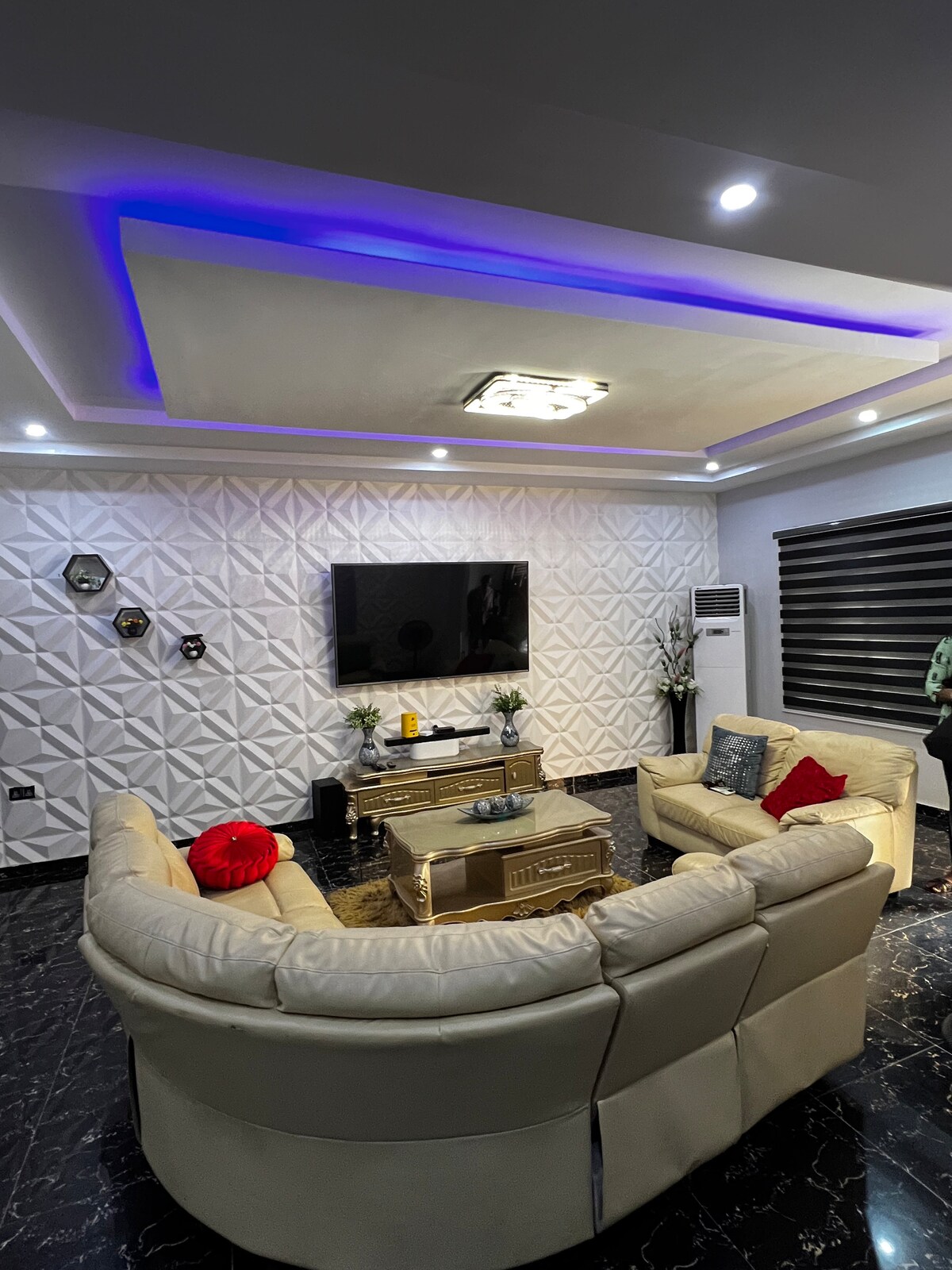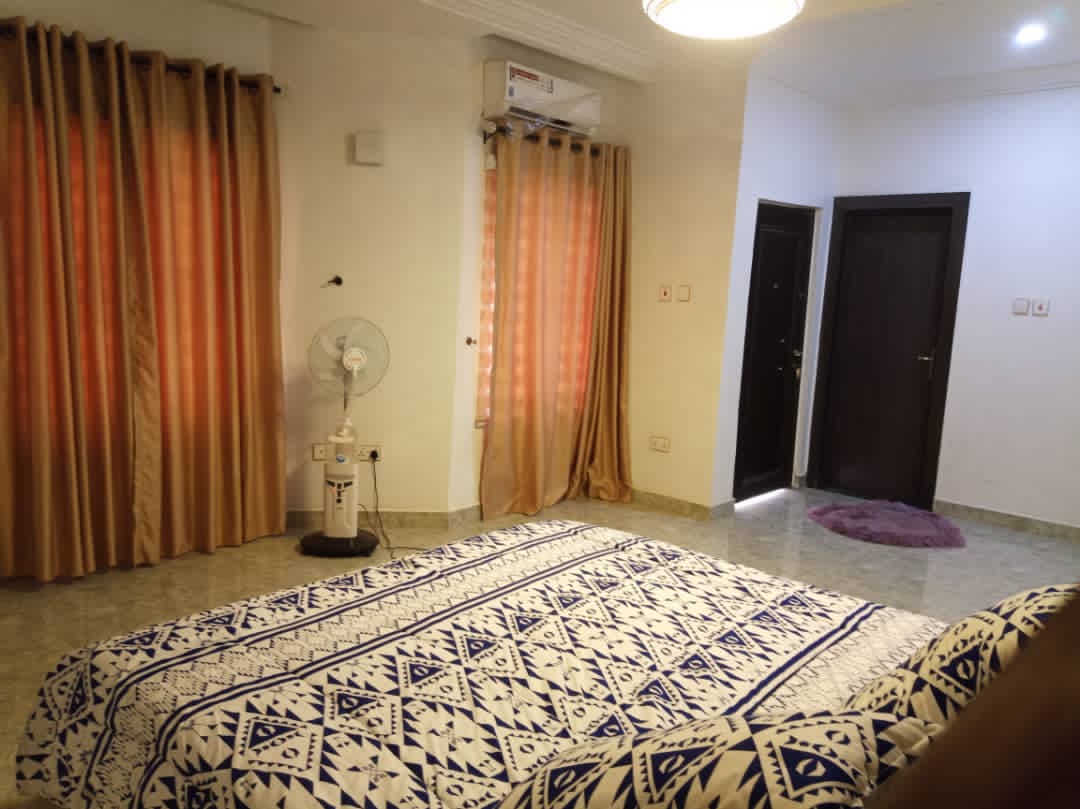 De James Hotels & Suites is a 4 bedroom apartment, containing a suite (a bathtub, standing shower and spacious) and 3 singled bedrooms (mini refrigerator, electric kettle, ) etc. attached each to a private bathroom with standing showers, soap, body lotion and shampoo. Uninterrupted 24hrs internet services, 24hrs power supply ( inverter) 24hrs water supply, TV and multimedia (Netflix, YouTube). Shared Kitchen, chef, Washing machines, 24hrs front desk reception.
