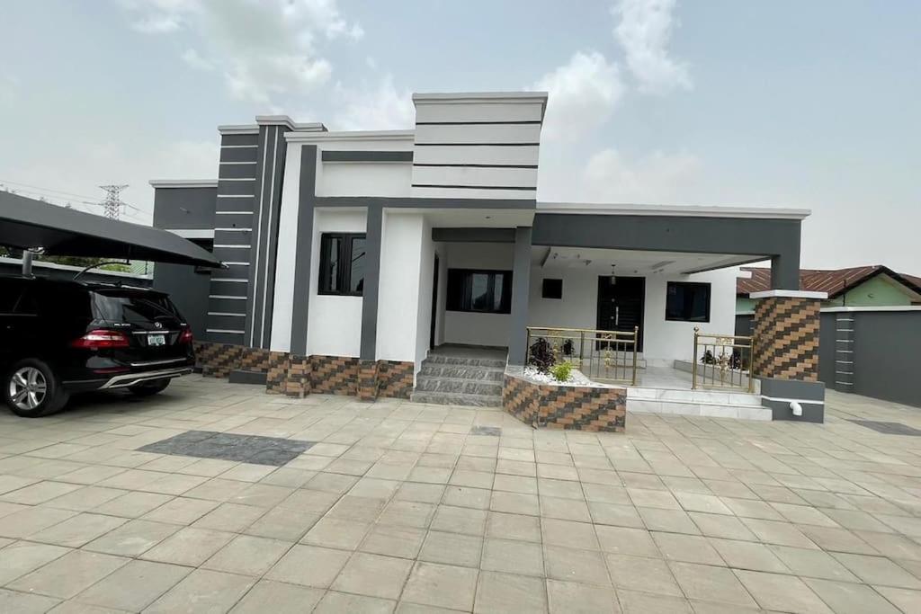 A Tastefully and massive 3bedroom House + with all Rooms en-suite and furnished with Beds and wardrobes, with a two Guest toilet, water heaters, Fitted and fully equipped Kitchen with all the standard cooking appliances, smoke extractor, furnished big Living room with executive Dining , Mikano Generator, Security dogs (optional), Ample Packing space, flowers, Security Cameras, Automatic security gates, Security Doors, wooden flooring, nice ambience, all room fitted with Air Conditioning