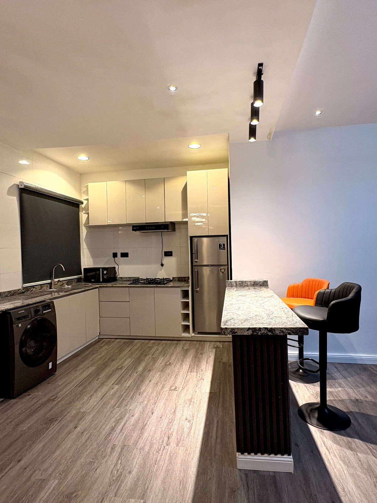 🎮 Modern Comfort Meets Style A cozy one-bedroom apartment with a modern kitchen, tasteful living space, and a PlayStation 5 setup for your downtime. Perfect for professionals, couples, or anyone who loves a touch of modern luxury.