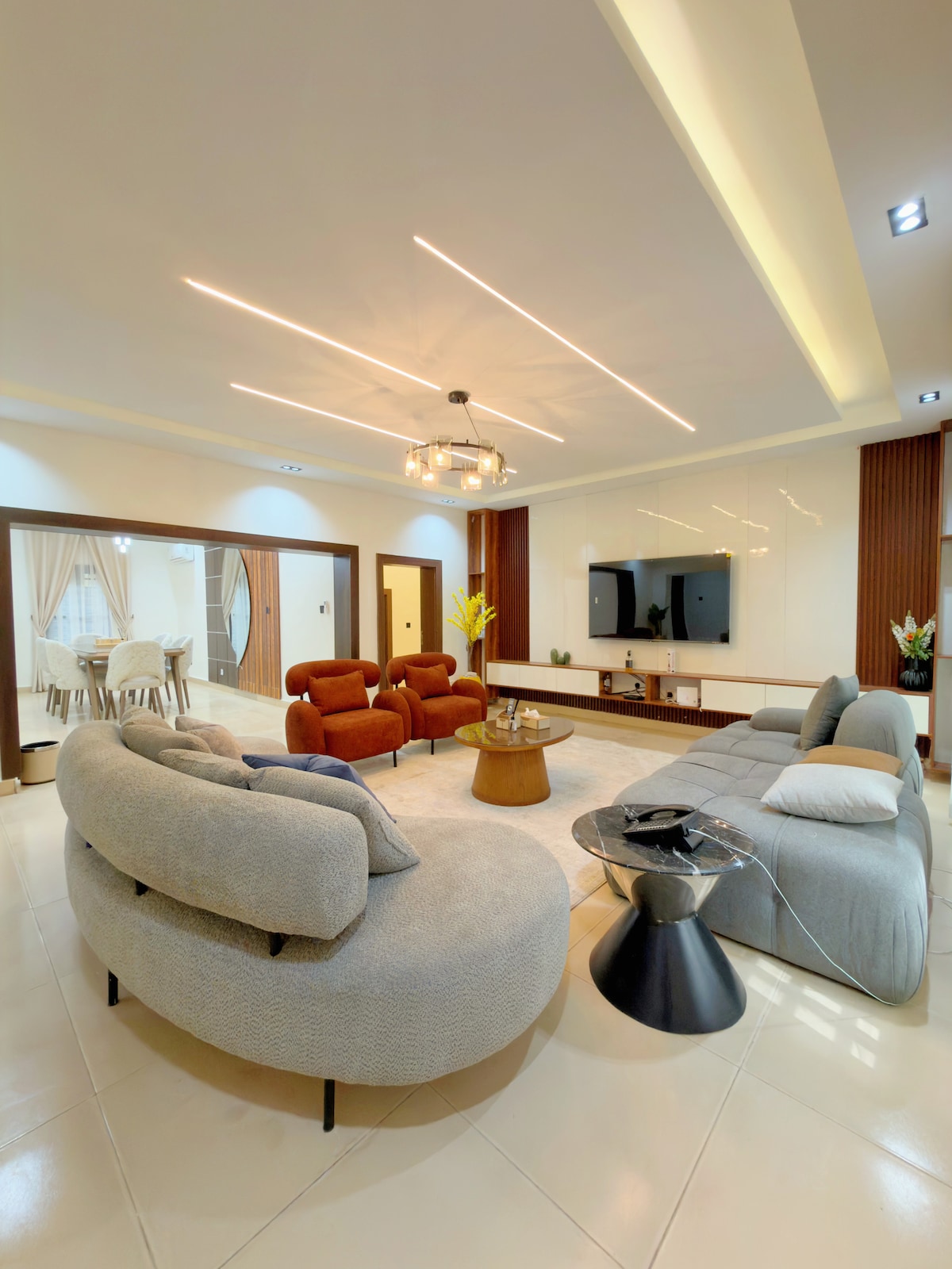 Amaris residences is a luxury furnished, family friendly and spacious home away from home at this centrally-located place. This is a 4 bedroom luxury house with 2 living rooms, an office space for work from home, high-speed Starlink satellite WiFi, Sonos ceiling speakers in the living room, master bedroom and bathroom, private chef and daily house cleaning in a well secured gated estate with 24 hours electricity