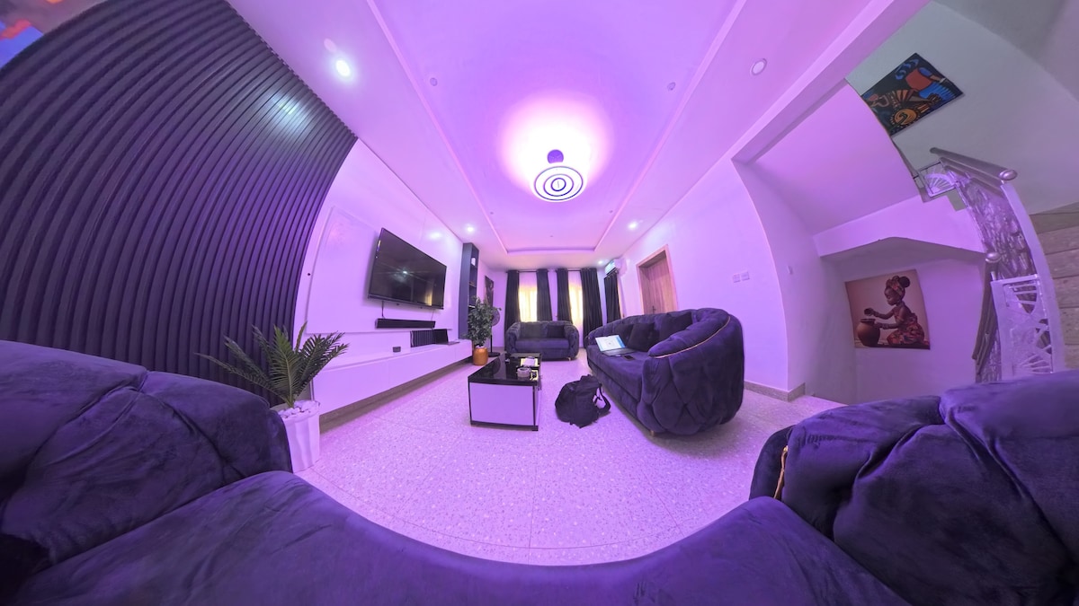D'EXQUISITE APARTMENTS, newly built in January 2024 with state of the art luxury amenities in a serene, peaceful, family friendly and unique environment close to attractions , malls, lounges/bar e.t.c . 24/7 Electricity, Free internet/WIFI, free parking and spacious compound that can be utilised for party/ gathering. The whole group will be comfortable in this spacious and unique space with 24/7 security personnel and supporting staff onsite for free cleaning services.
