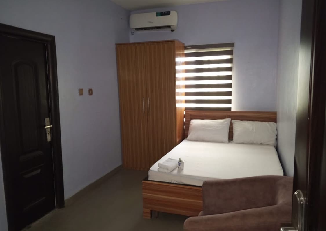 Experience the best of Abuja in our serene one room which gives off an uplifting energy. With soft lighting beneath the bed and warm tones, it brightens up your stay for a truly relaxing experience. Enjoy a restful night's sleep on our plush queen-size bed, stay entertained with smart TV and Netflix, and stay connected with fast Wi-Fi. Enjoy a private attached bathroom with a heater for a warm cozy bath and mini fridge. Perfect for solo travelers, getaways, couples, and business executives.