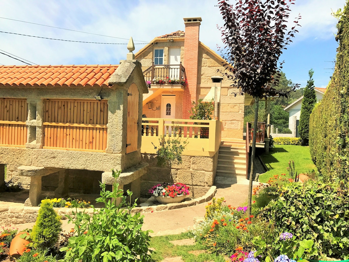 La casa está situada sobre un acantilado, dispone de una amplia terraza con espectaculares vistas a la Ría de Pontevedra. El jardín, en terrazas, termina con una bajada particular a una pequeña cala. Está a cinco minutos andando al centro del pueblo y de las playas urbanas.