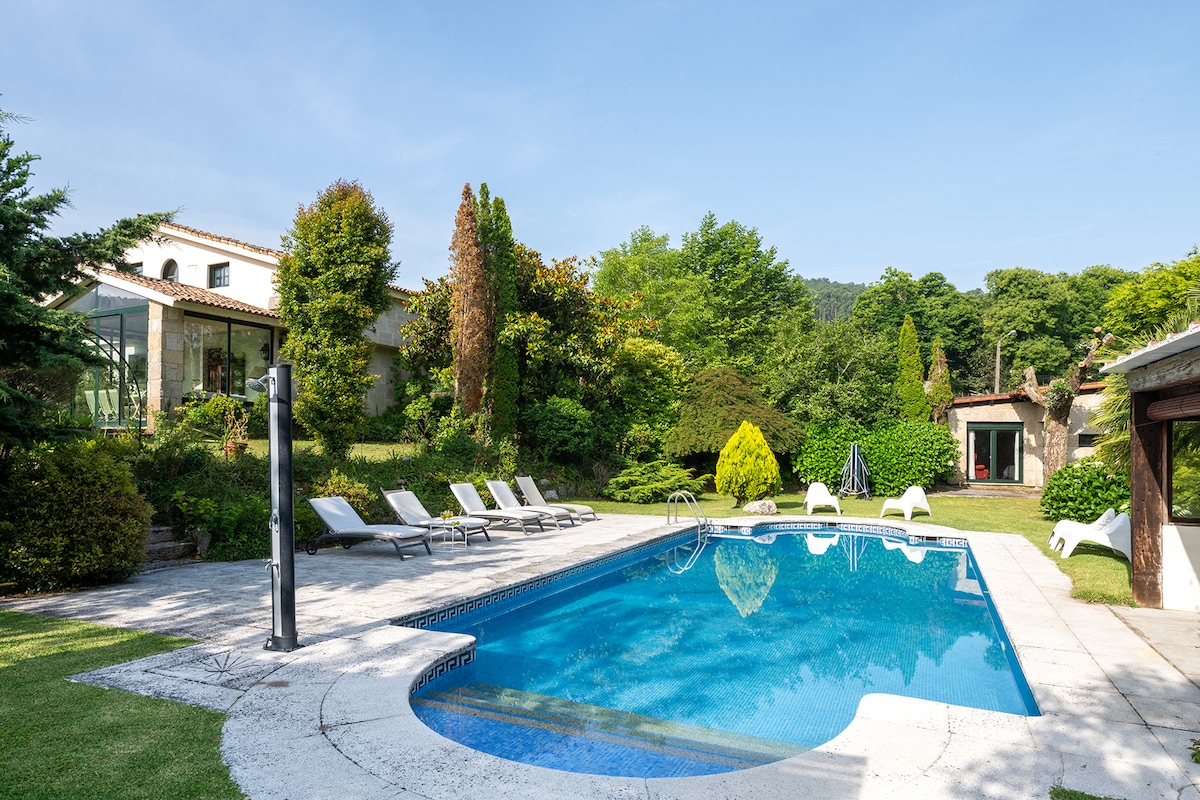 Single row rooms with private pool and private bathroom in Ria de Vigo, Pontevedra. Ideal for families and groups. Are you looking for tranquility, nature and comfort next to the sea? Our house is perfect for a group or family getaway in the heart of the Ria de Vigo. Accommodates 8 people. Privileged location. We are in a quiet area, surrounded by nature and just a few minutes from the beaches and cities of Vigo and Pontevedra. Trails for walks, viewpoints and charming villages