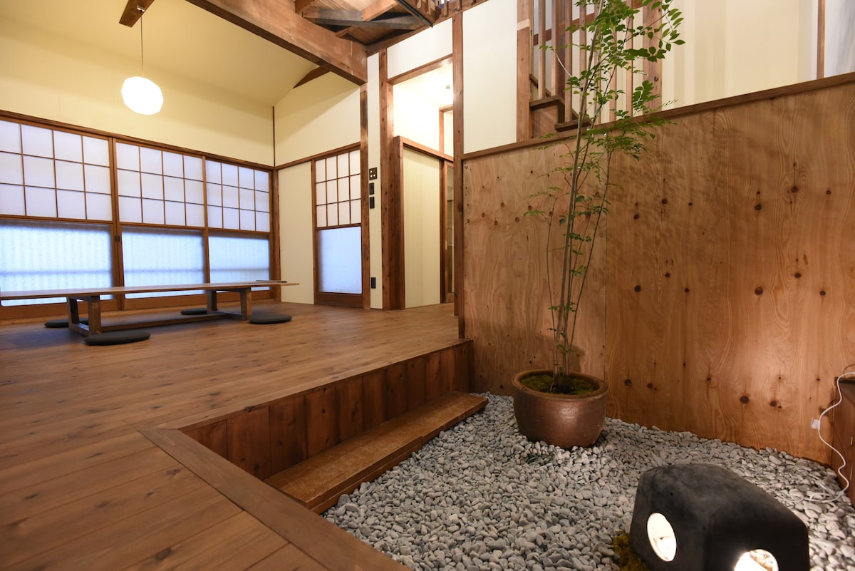 位于万代City和新潟站步行可达范围内。这是一栋翻新后的古民家,兼顾市中心的便利与住宅区的宁静。整栋独栋出租,可最多容纳5位客人,非常适合家庭和朋友入住。 空间由专业室内设计师设计,将日式韵味与现代舒适融合,营造出特别的住宿体验。请在经过翻新的干净室内环境中悠闲放松。 住宿特点 • 地理位置:步行可抵达新潟站、万代City、朱鹭Messe • 空间:74 平方米的宽敞日式现代空间 • 设施:Wi‑Fi、厨房、洗衣机、空调加热、烹饪器具、床上用品一应俱全 • 住宿类型:适合短期入住、远程办公、长期逗留 • 整栋出租:从玄关到室内都可完全独立使用。免费停车场(可停迷你面包车) 周边信息 • 万代City(购物与餐饮):步行约 8 分钟 • 新潟站:步行约 13 分钟 • 朱鹭Messe:步行约 20 分钟 • 便利店/超市:步行约 5 分钟内