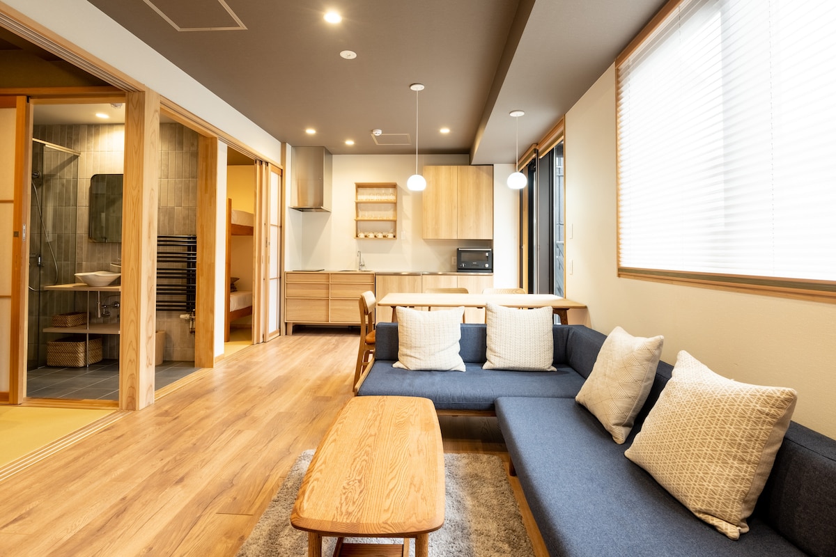 Escape to SLEEEP JP.Myoko, a stylish hotel nestled in the heart of Myoko. The co-living space is a ski-in-ski-out location and features traditional Japanese style rooms and onsen, designed to provide travellers with quality rest after a day on the slopes. While we focus on providing a streamlined and comfortable stay, you’ll find everything you need to recharge and prepare for your next day exploring the Alps. Think minimalist design meets maximum comfort, ensuring a restful night’s sleep.