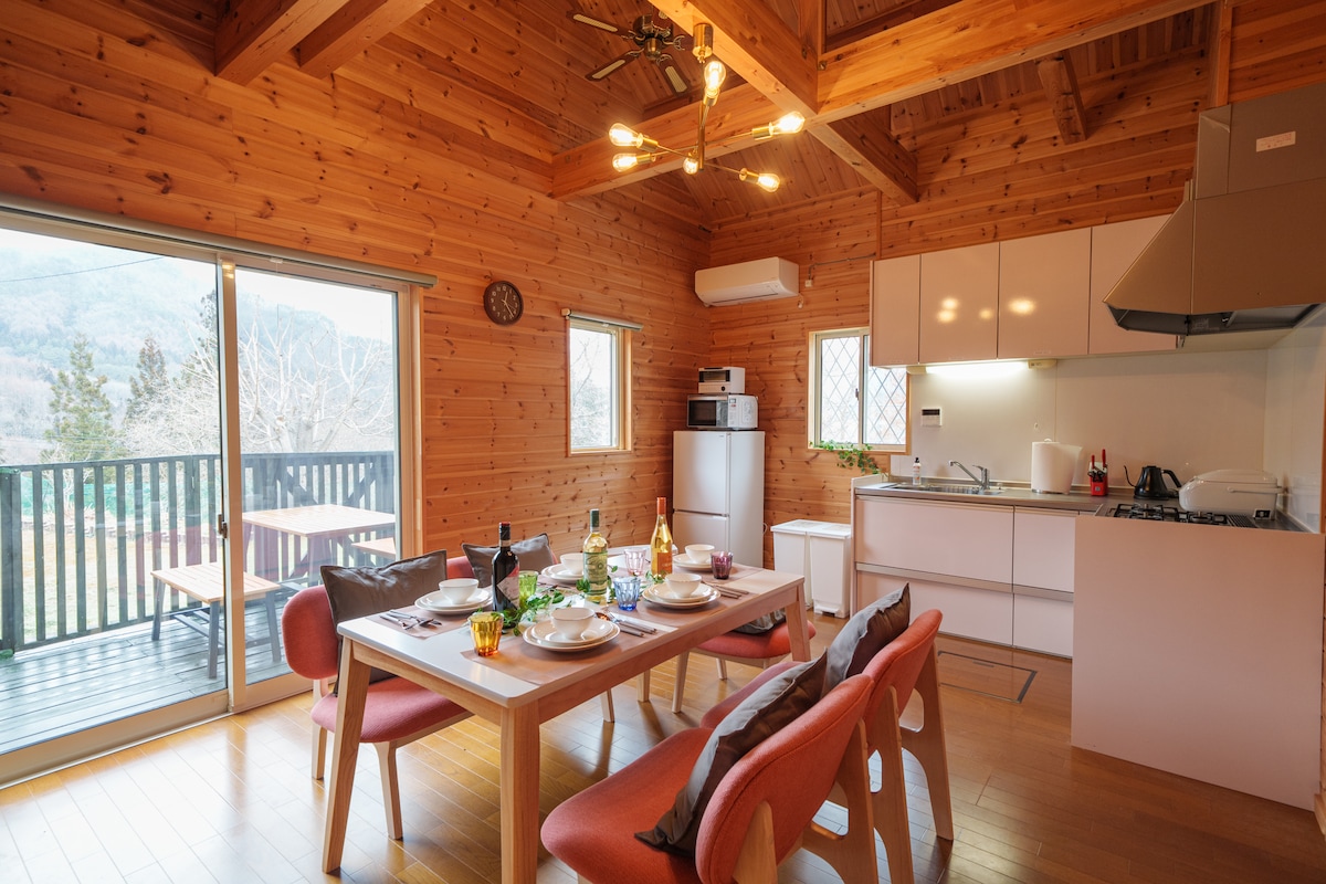 ☆3 cars parking & 15min drive to Nozawa Onsen☆ Live like a local in this deluxe pet-friendly western ski cabin with easy access from Tokyo! Togari Cottage is an easy walk to Togari’s slopes, village center, and hot spring baths. A perfect retreat for families to enjoy meals in the full kitchen while avoiding busy restaurants. Cozy up in the living room by the wood pellet stove while gazing over the valley with unobstructed mountain views. Knowledgeable bilingual hosts!