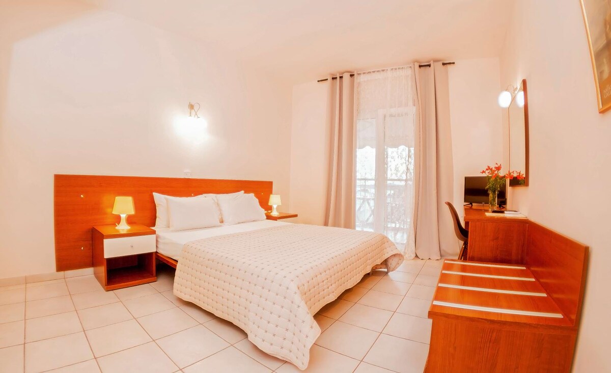 A double bed studio, nice, cozy, and comfortable. Max. guests: 2 people (Max.Adults:2 It has 2 single beds or one comfortable double bed, a fully equipped kitchenette, a private bathroom WC/shower, balcony with a sea view. A/C Hot water 24h Free Wi-Fi Changing linen and towels every 3 nights Daily cleaning wardrobe, balcony, direct sea view, awning, mosquito nets.