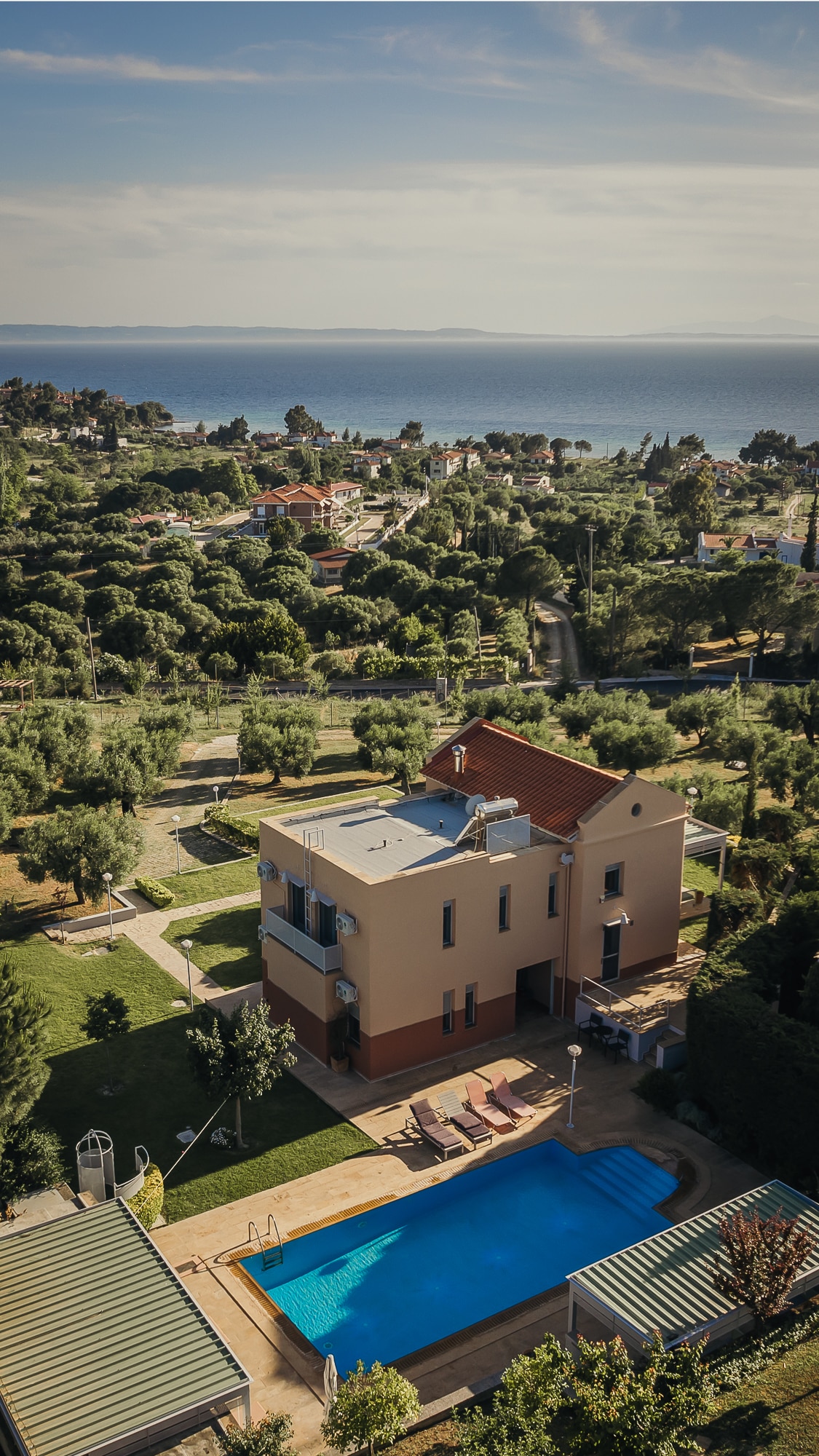 The newly stone built “The Mavrolitharo Residence”, the epitome of laid-back elegance and luxury, rests in an unspoiled area of unparalleled natural beauty and tranquility, amid olive and pine trees and features an array of high-end amenities. Designed to showcase the untouched beauty of Chalkidiki, the southeastern oriented residence, offers, from ALL its areas, unrestricted views of the Aegean Sea and the holly mountain Athos, a UNESCO world heritage center.