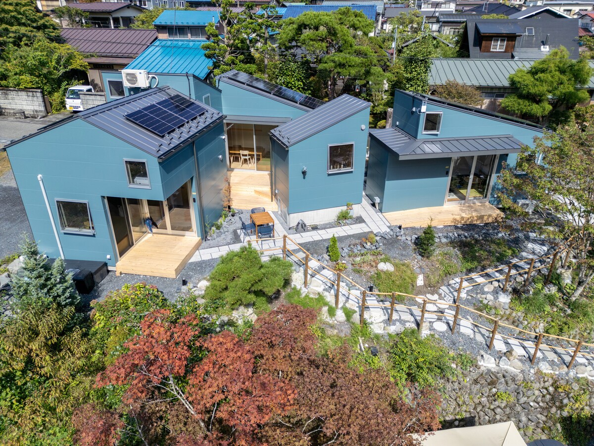 Welcome to Nagi GIVE NIKKO, a peaceful retreat surrounded by clear rivers and lush greenery. Relax in the private sauna, enjoy a campfire under the stars, or have a BBQ with friends. The 125㎡ 4-bedroom house blends traditional Japanese design with modern comfort and sleeps up to 10 guests. Just 10 minutes from Tobu Nikko Station and about 2 hours from Tokyo, it’s a perfect base to explore Nikko Toshogu Shrine and experience the calm and beauty of nature.