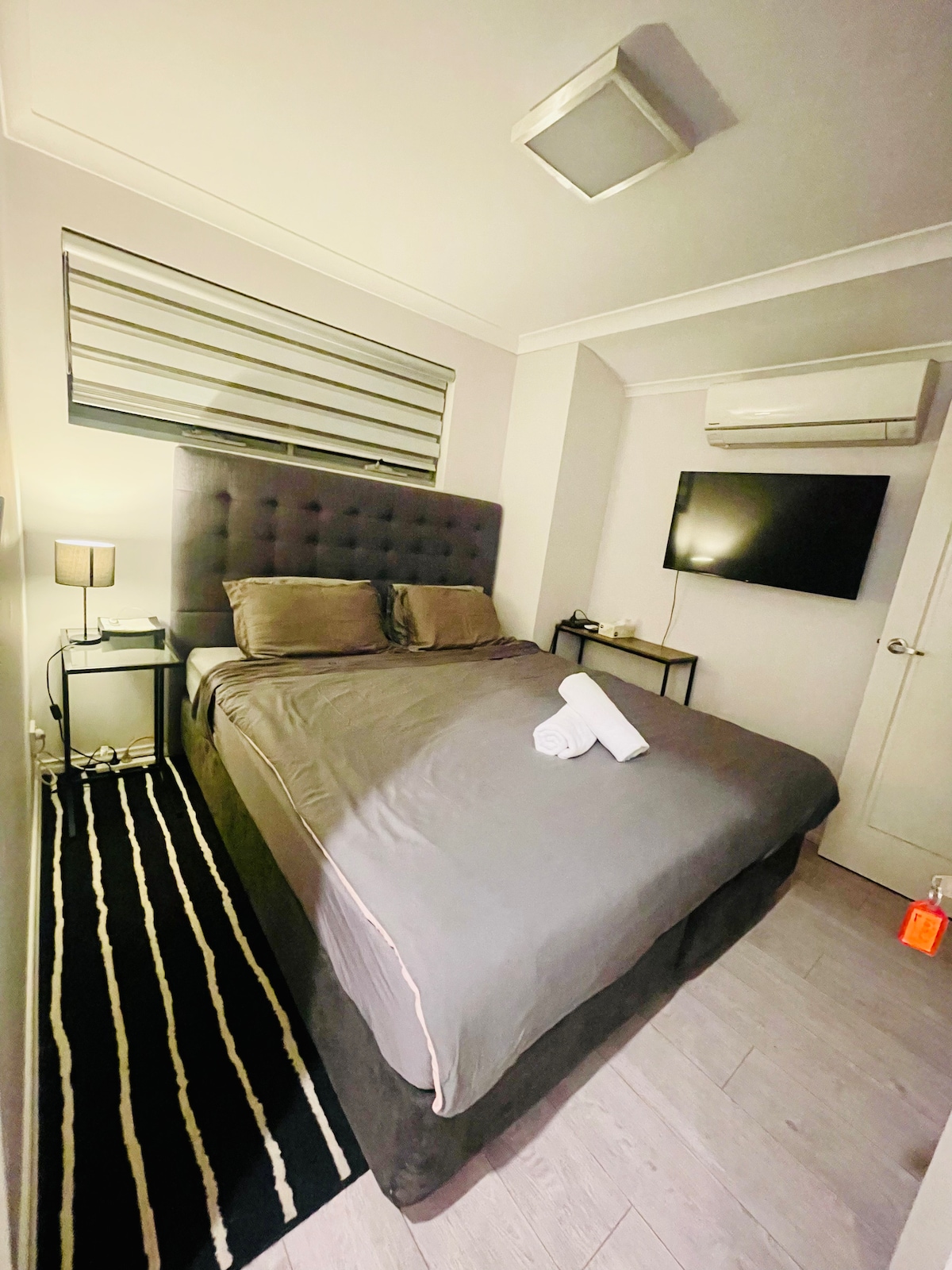 Alma Apartment is easy access to both airports and to the Swan Valley. Your accommodation is self contained, with your own front door, and initial access is via a lock box so you can come and go as you please. Basic breakfast goods supplied for first 1-2 days. A queen size bed with firm mattress, as well as clothes storage. There is a comfy sofa for watching TV (currently free to air only) and a console with powerpoints for charging your devices. Wifi accessible. NO SMOKING ON PROPERTY.