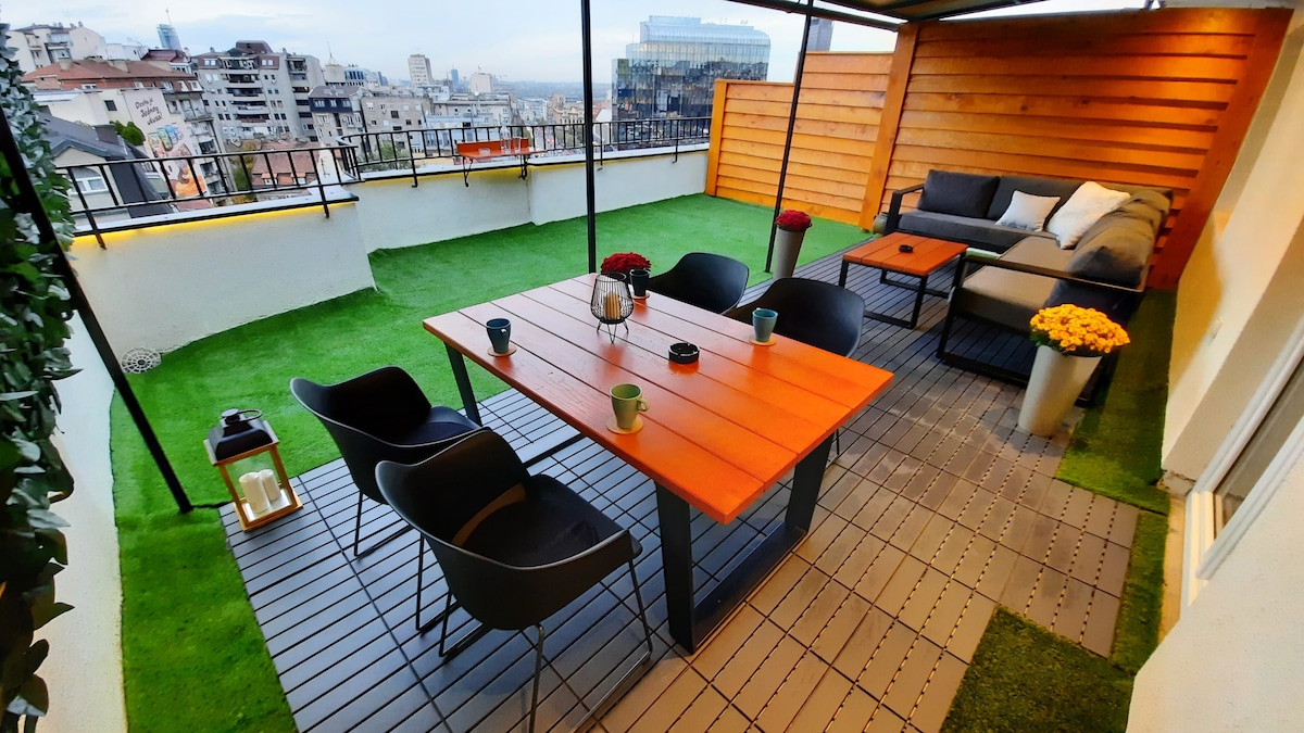 Feel the warmth of the apartment,smell and sounds trough open windows that give a sense of belonging to Belgrade. Our location is in the city center between the Slavija square and Saint Sava Temple. We can offer you transfers from the airport for a fee and free transfers from the bas and train station . We have just open our place and we are more then glad to welcome our first guest. We expect you : ) Happy People Family