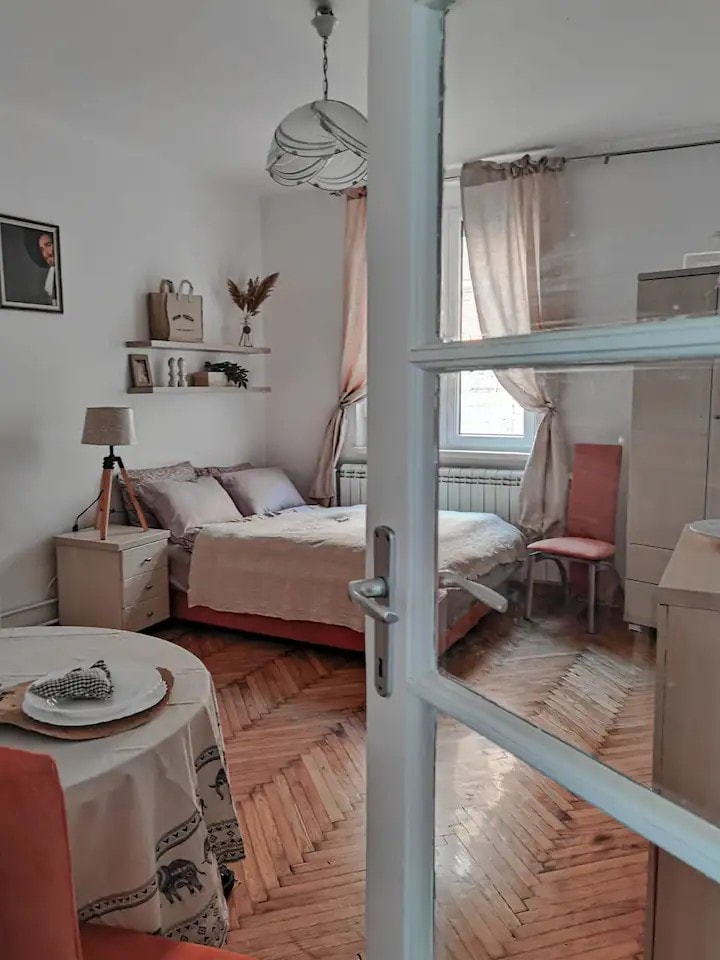 This stylish 30 sqm studio is located in Belgrade’s elegant Vračar district, on a quiet street next to the Nikola Tesla Museum. Only 15 min walk to the National Theatre and Republic Square, or 10 min to St. Sava Temple. The airport shuttle bus stops in our street, and a supermarket is 2 min away. Perfect for couples or solo travelers looking for a central yet peaceful stay with fast Wi-Fi, air conditioning, and a king-size bed.