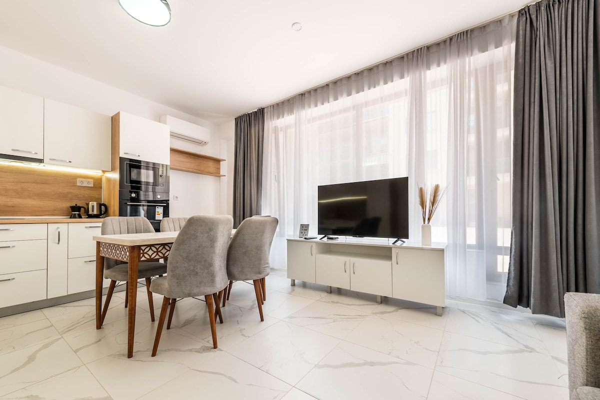 Cozy and modern, the Studio offers a nice and comfortable double bed, sitting/dinning area, kitchenette and fully equipped bathroom. Located in the very heart of Varna, DOLCE VITA is just a few minutes away from the beach, Sea garden and the epic hotel "Black Sea". Surrounded by the most exclusive restaurants, bars, sports and shopping facilities, DOLCE VITA is your best choice for a nice holiday or a business trip in Varna.
