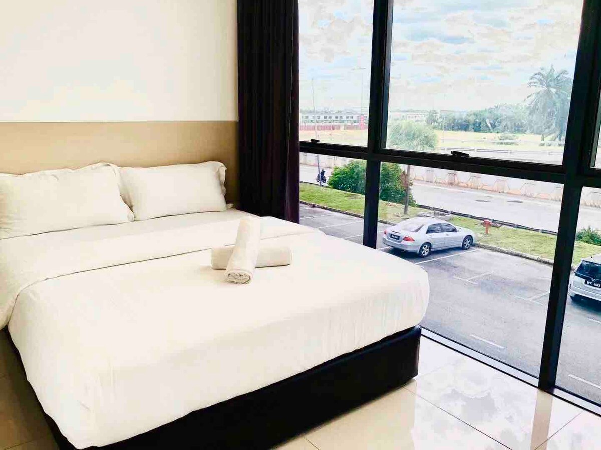 我们是离马来西亚国际机场KLIA和KLIA2最近的精品酒店,车程仅需10分钟。适用于机场转机,赶早班机,以及想要去奥特莱斯免税店购物的人们。我们为您配备舒适的大床和床垫,相信旅途疲惫的您一定会舒舒服服的睡个好觉!除此之外卧室还有空调、衣柜、挂墙液晶电视、免费wifi、以及独立的卫生间哦(24小时热水是妥妥的)楼宇内安装有电梯,楼道干净整洁。在这里您不用担心大都市的吵闹,旁边有本地的一间大型商场KIP MALL,您可以在这里购买本地平价土产商品。