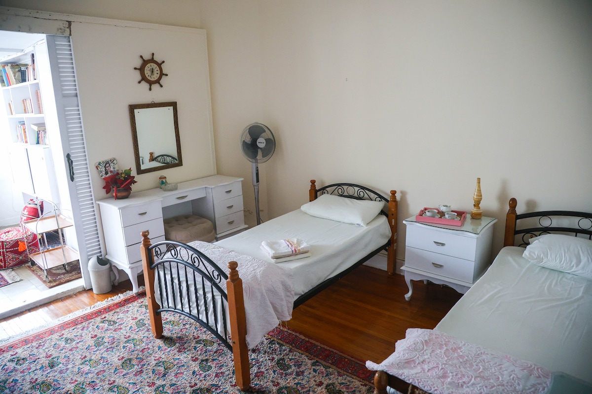 come and book ur bed and breakfast in big female dorm room with nice balcony which is located in central area where the banks and resturants and musuem and shopes i promise u u will enjoy and feel like u r home