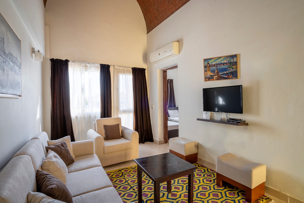 Wake up to breathtaking ocean views and the soothing sound of waves in our elegantly designed beachfront apartment. 🌊✨ Located in the heart of Hurghada, this stylish retreat offers high-end furnishings, calming interiors, and modern amenities for a truly relaxing stay. Enjoy stunning views of the beach. vibrant city life and top attractions—all just moments away! 🏖️🌇