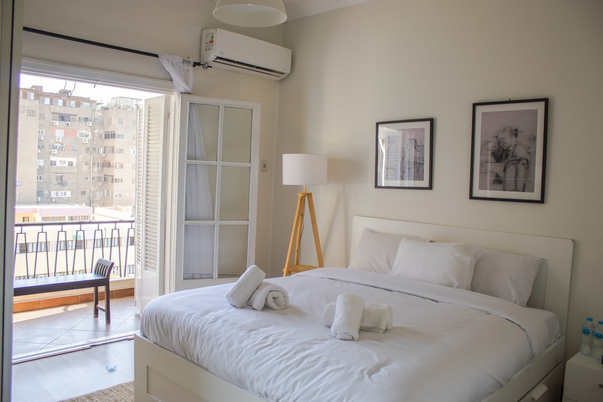 Stay just 1.4 miles (7 min) from Cairo Airport, with a beautiful view of the airport and front garden ,,,all without aircraft noise. 🚖 Free Airport Drop-Off & affordable pickup available 🔑 Self Check-In with your private PIN ⚡ Fast Wi-Fi for work or streaming 🚗 Uber 24/7 at your doorstep 🥘 Just steps (1–3 min walk) to restaurants, cafés, supermarkets