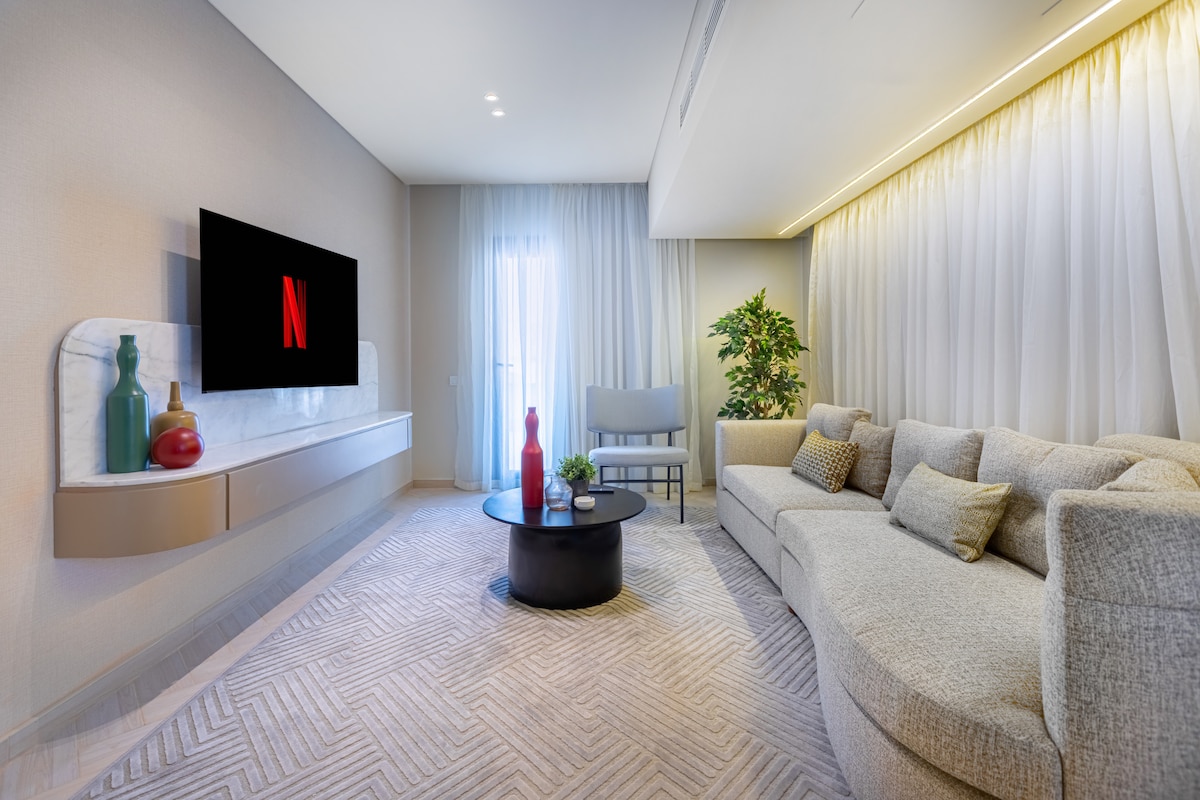 Luxuriate in a hotel-style stay at this luxurious smart apartment in Sheikh Zayed. Enjoy two elegant master suites with private bathrooms, a third room with a sofa bed, private jacuzzi, 65” Smart TV, sound system, smart lighting, central A/C, and keyless entry. Located in a quiet, upscale area near restaurants, malls, and hospitals. Perfect for families, youth, and business travelers seeking privacy, luxury, comfort, and a premium experience.