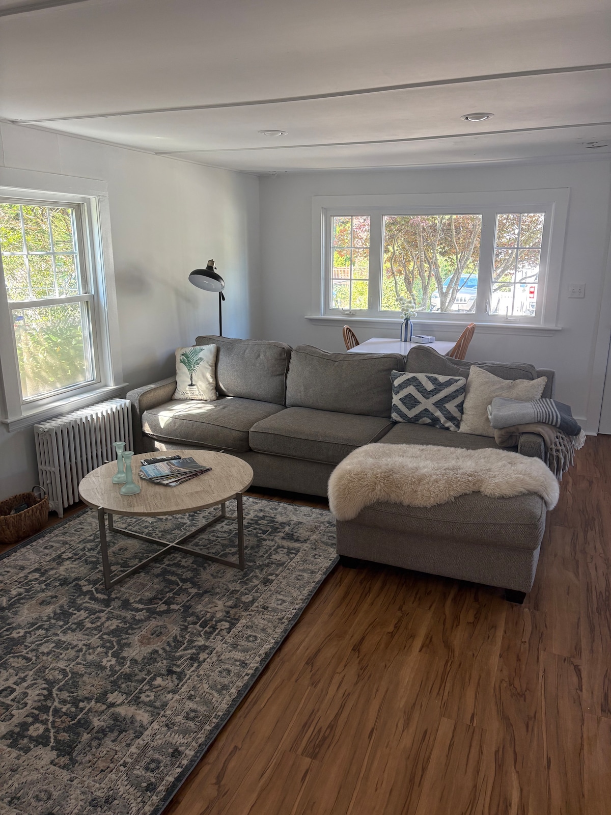 2 Bedroom with Loft, 1 Bathroom fully furnished Home on Gloucester harbor. Dead end street with 3 off street parking spots. Restaurants, local art gallery's, the beach all just a short walk away. Wake up with the sweet smell of ocean air and the sound of seagulls calling. Enjoy your breakfast with a million dollar view on the 4 season porch with 8 sliding windows overlooking the harbor. You could spend hours watching the boats go by as you read a good book with your fur baby on your lap.