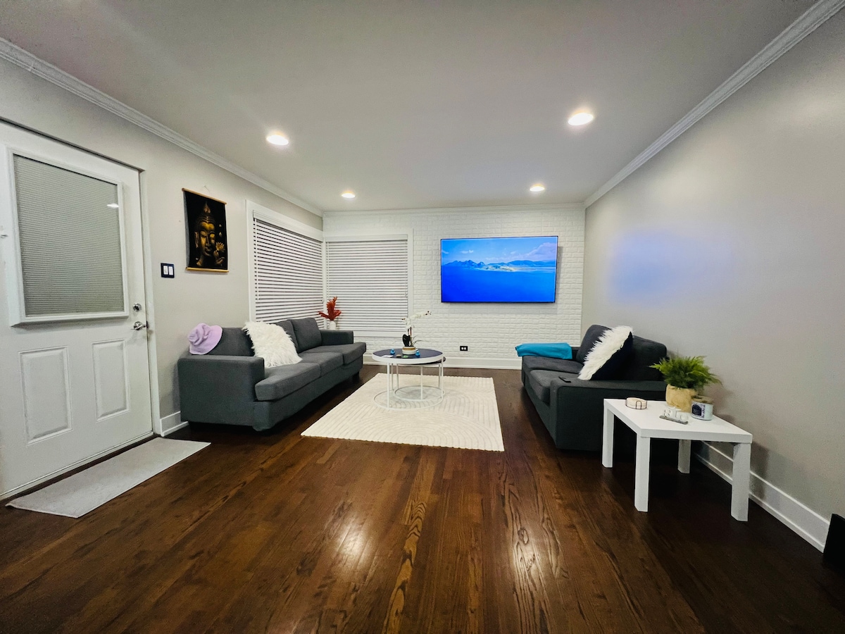 Welcome to your cozy house in Skokie - just a short drive to the heart of Chicago, the lakefront, Northwestern and Loyola - making it an ideal spot for whatever brings you to the area! This warm and inviting 2-bedroom, 1.5-bath home is perfectly situated for those wanting to explore the city while enjoying a peaceful retreat in the suburbs. Whether you're here for a weekend getaway or an extended stay, you’ll find everything you need to feel right at home.